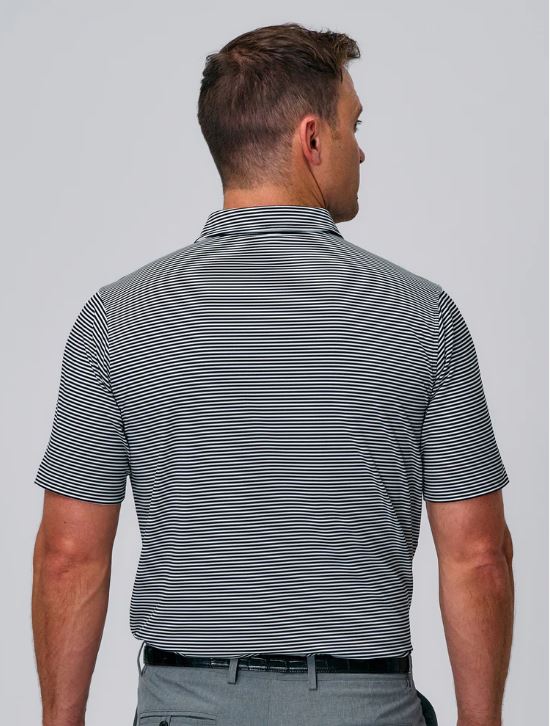 A striped polo that’s equally at home on the course or Park Avenue. It features a clean, slightly tapered silhouette, and a customizable memory collar that lets you create the perfect shape with every wear. Ultra-lightweight, moisture-wicking, and UPF 50+ stretch fabric keeps you covered and comfortable from the first hole to the last.